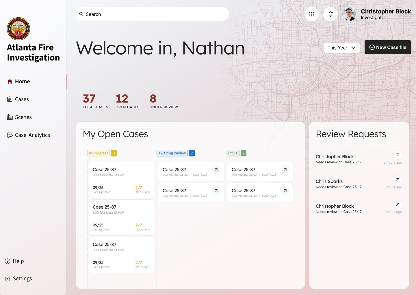 Helping arson investigators create, manage, and report cases through centralized platform.