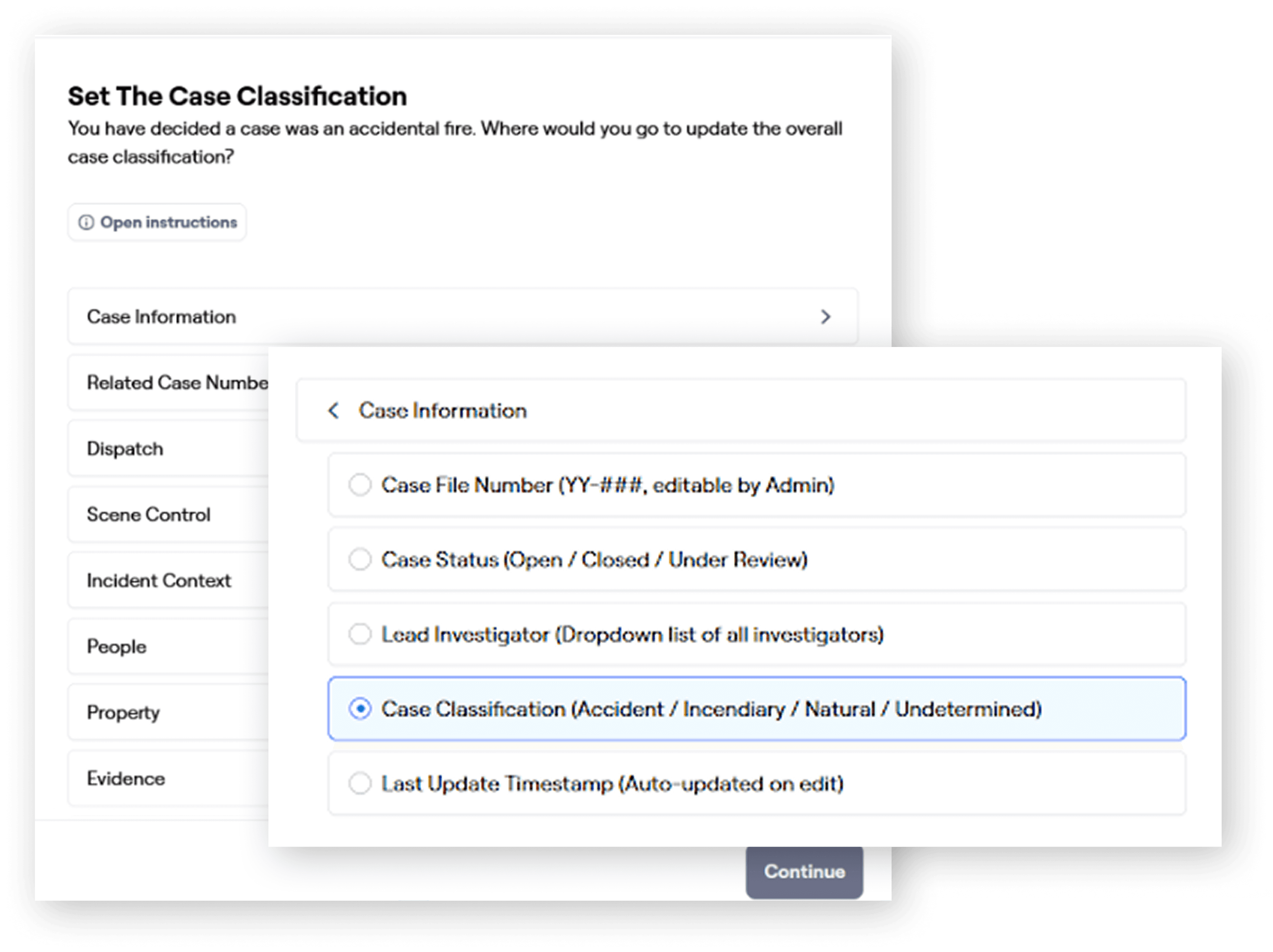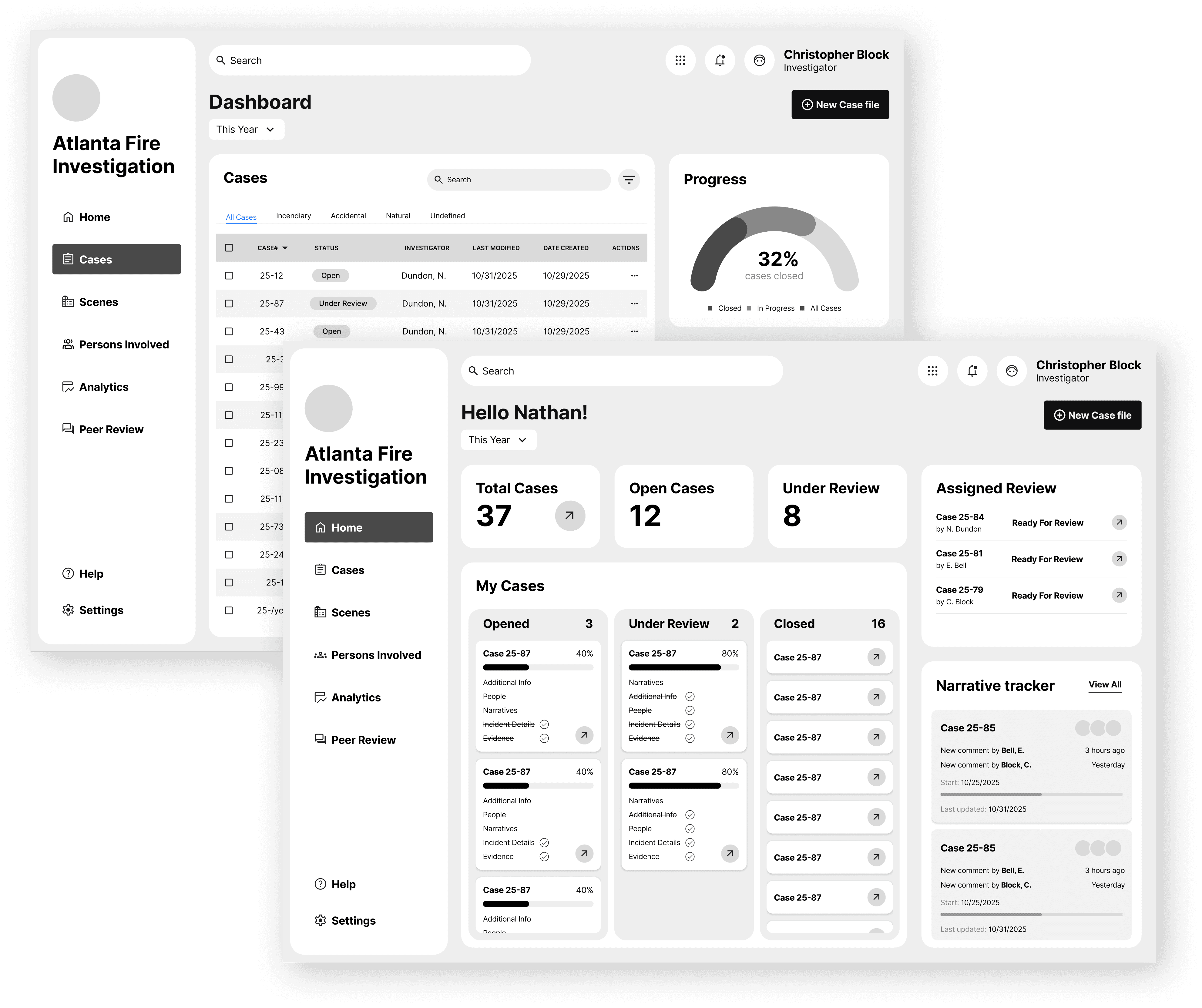 Led comprehensive user research and UX design on creating case entry and management system for arson investigators